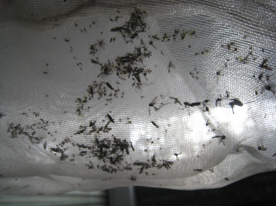 圖三: 吸入的小黑蚊與蚊蟲很快就會死亡於網內
